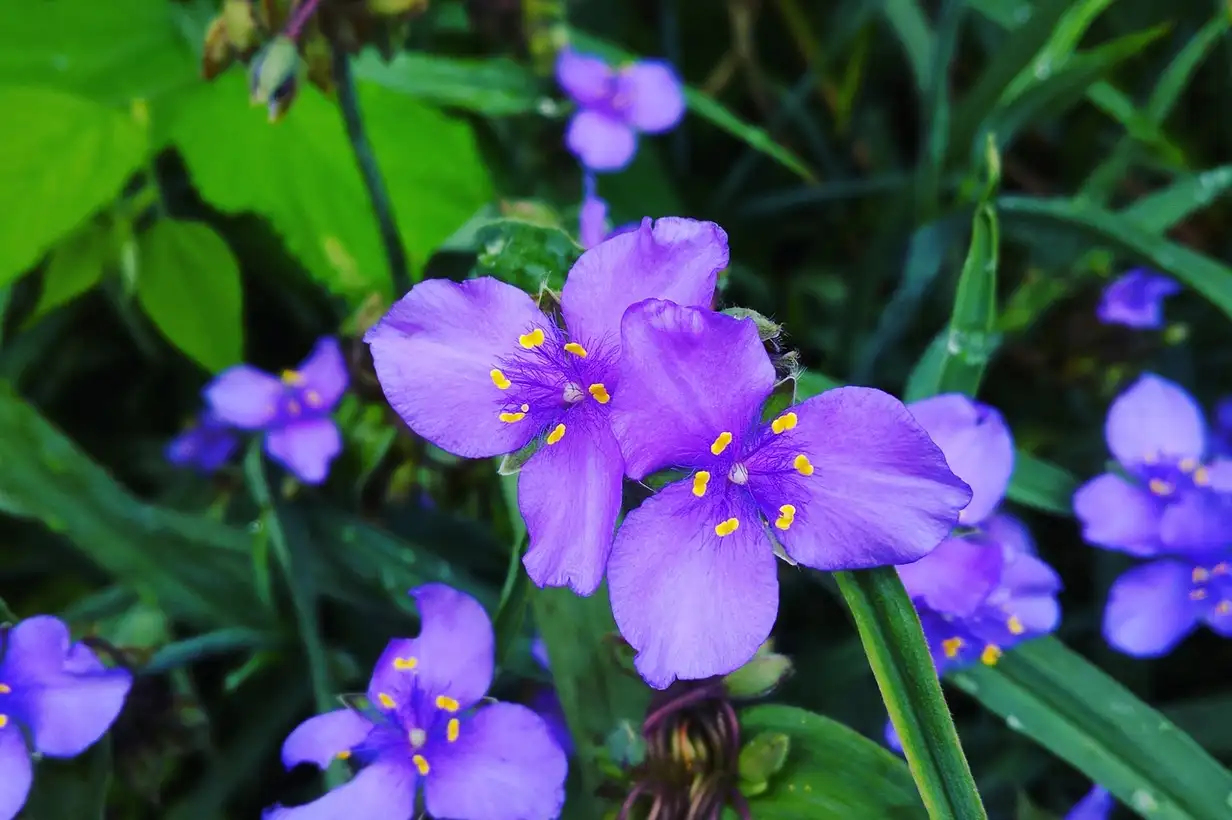 2. Été : la plante se développe et fleurit abondamment.