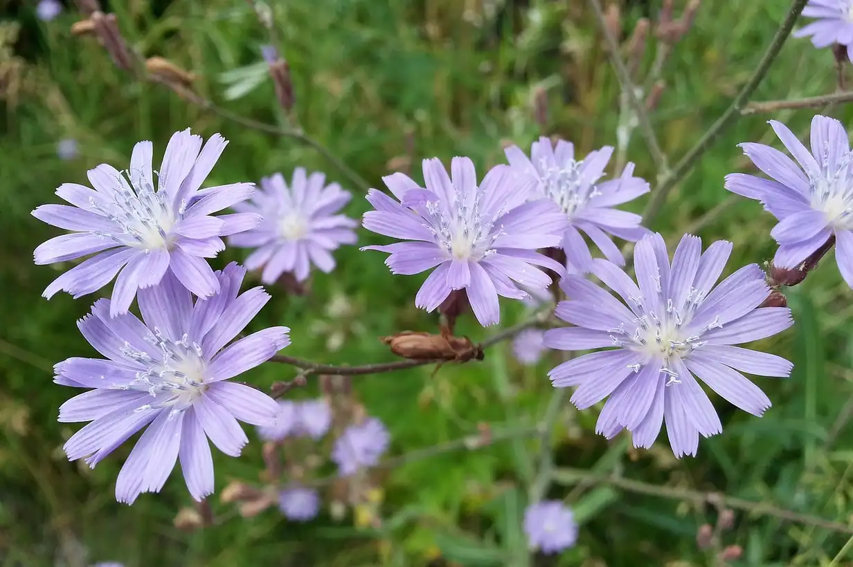 La chicorée sauvage offre de jolies fleurs bleues qui attirent pollinisateurs et insectes utiles. On peut :